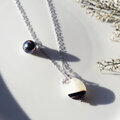 ピーコックブラックの大粒パールで、夜を寄り添わせました。