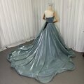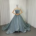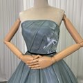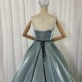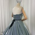 カラードレス ブルー ベアトップ ロングトレーン サッシュベルト 光沢感 編み上げ 披露宴