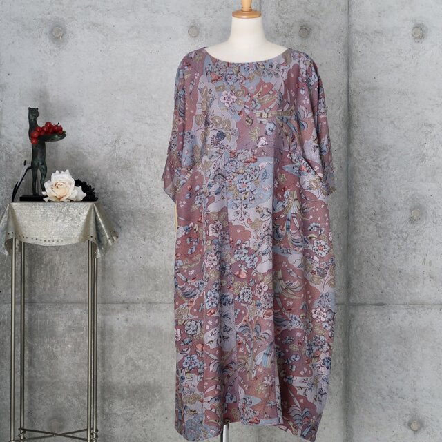 辻ヶ花文様のワンピース ゆったり目 ドロップショルダー 着物リメイク
