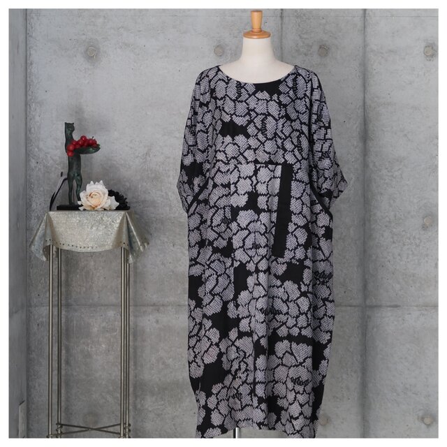 絞りのワンピース ゆったり目 ドロップショルダー 着物リメイク