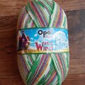 opal毛糸で編んだ就寝用ソックスです。