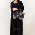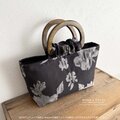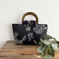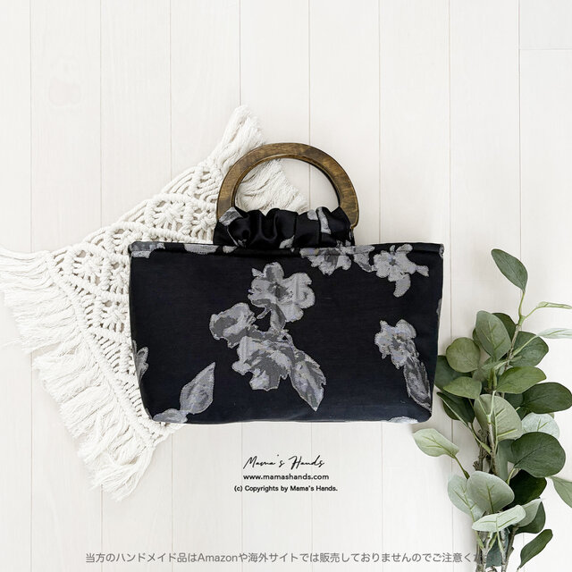 《高級 ジャガード織り》おしゃれな ラメ 花柄 特殊な 黒 ブラック 小柄 木の持ち手 手提げ トートバック