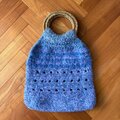 ブルーとピンクの糸を引き合せて、持ち手付近にはシルバーのキラキラを施したトートバッグ!