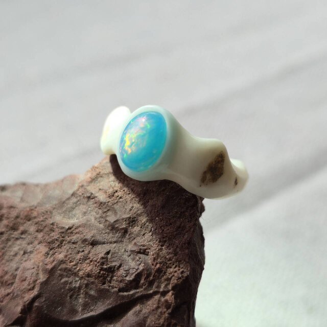 こちらは【鹿の角 ブルーカラーオパールのリング 約7.5号】になります。