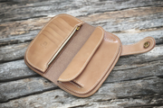 植物タンニンなめし革の栃木レザーを使い。手縫いで一針一針丁寧に仕上げた柔らかい曲線が特徴的の長財布です。羅針盤コンチョかキラリと輝きます。