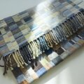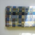 青系、黄色系を中心にスモーキーな10色を組み合わせて織りました。