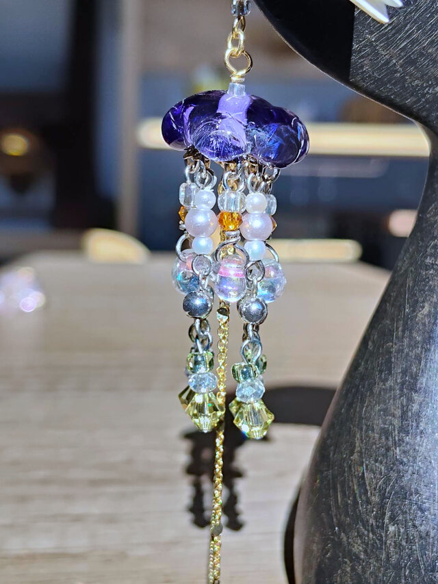 バーナーでガラスを溶かし傘を作り、そこから多彩なパーツを使い口腕を組み立てる一点物のくらげを作っています。あなたのお気に入りを見つけに来てください♪インスタI…