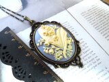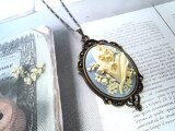 アクリルカメオ(スズラン:サイズ約40×30mm☆カラー:ラベンダーグレー×バニラ/オランダ)、ペンダント用フレーム(中抜きフレーム:約65×37㎜/カンを含む)、合わせバチカン(サイズ:約9㎜)、デザインチェーンネックレス(フィガロチェーン/線径約0.4mm)、カニカン、Cカン、超強力接着剤、ジェムストーンエッセンス(Heaven&Earth社☆エネルギー強化剤☆基本的には、シナジー12でお手入れ)
