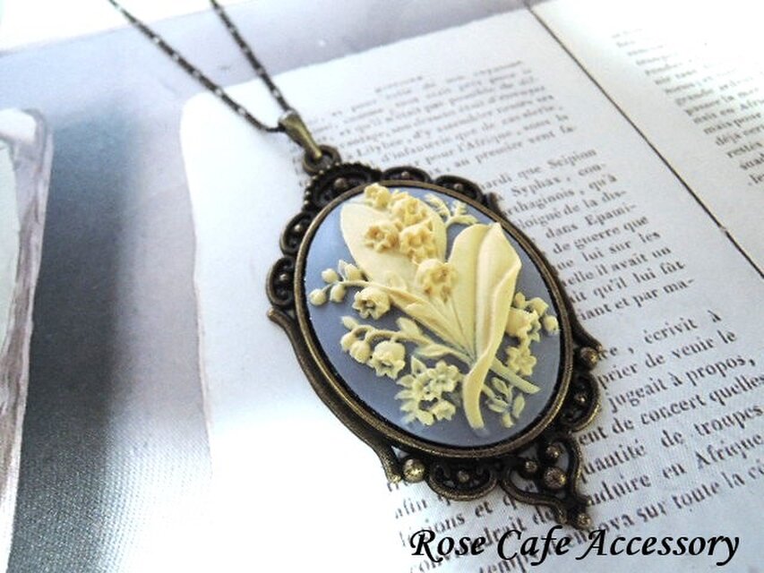 (1423)数量限定新春特価素敵なカメオ✨スズランアクリルカメオのペンダント✨ラベンダーグレー×バニラ。・。・(^^♪