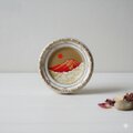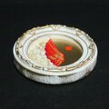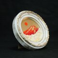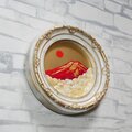作品の背景には、神聖な黄金色の空が広がり、湧き立つ白い雲は雄大な自然の息吹を感じさせます。手のひらサイズの小さな円形ミニ絵画に、壮大で神秘的な風景が凝縮されていることに驚かされることでしょう。「赤富士」は、お客様の生活空間に希望と開運のエネルギーをもたらす特別な一品です。