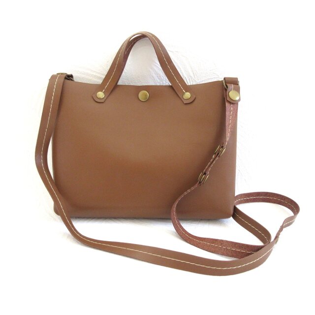 ☆ブラウンにベージュのステッチでアクセントを付けた薄くて軽いスムースレザーです♪