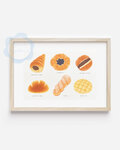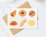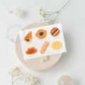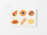 クリームパン、メロンパン、あんバターやデニッシュなど、色々なパンを色鉛筆タッチで描きました ポストカード「3枚セット」です