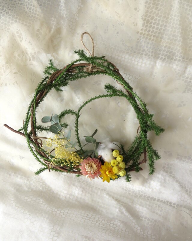 *花材:ドライフラワー(貝殻草・綿の実・ヒカゲノカズラ・ユーカリ等)