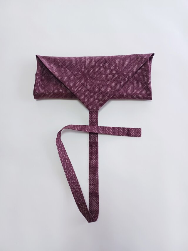 赤紫とベージュで麻の葉の模様が織られた落ち着いた雰囲気の紬です。