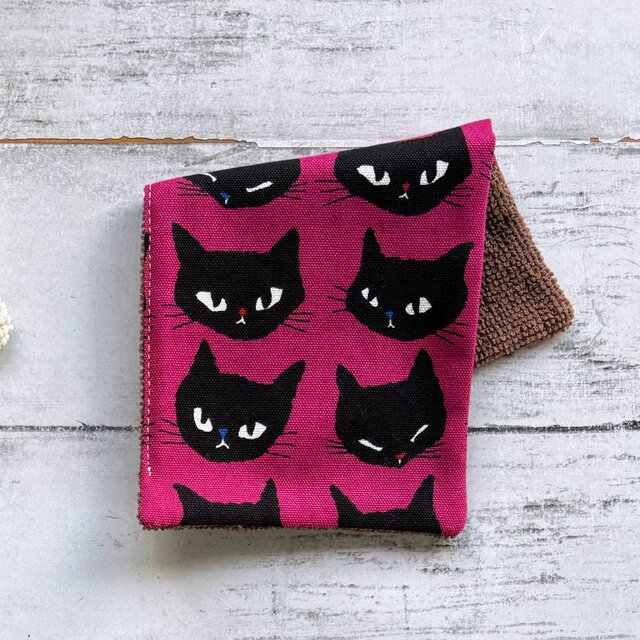 にぁあ。 猫の表情がキュンとなるコットンとマイクロファイバータオルのハーフハンカチタオルです。