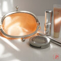 ピーチの糸×同色のクリアピーチのビーズの編み地です。
