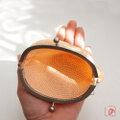 浅目のくし型口金のがま口は出し入れラクラク、小物を入れるのに便利です。