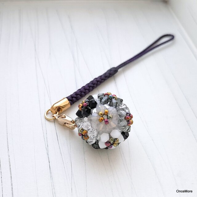 【数量限定】花手毬の根付け・帯飾り6color(モノトーン)Ⅱ
