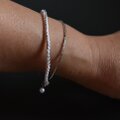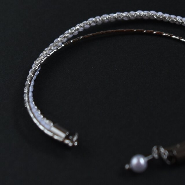 白く艶やかな糸と銀色バングルのコンビで、美しい銀世界の静寂を想像して頂けたら幸いです。