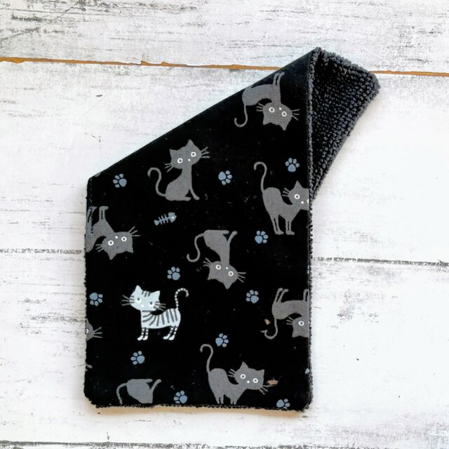 にぁあ。 猫の表情がキュンとなるコットンとマイクロファイバータオルのハーフハンカチタオルです。