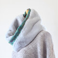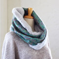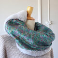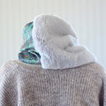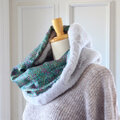 ★インドのカンタ刺繍(刺し子)シルクとエコファーで作ったねじりスヌード。