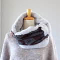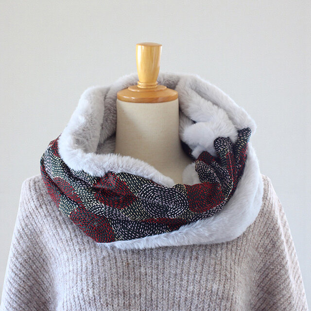 ★インドのカンタ刺繍(刺し子)シルクとエコファーで作ったねじりスヌード。