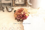 ベージュ系の紫陽花や小花、