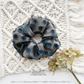 《ふんわり夜空 星屑のドット》おしゃれな ブルー 水玉 ブラック 黒 ヘアゴム シュシュ