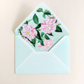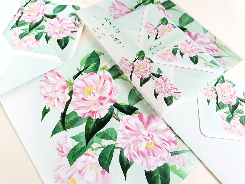 封筒の中にも花を咲かせた椿尽くしの華やかなレターセットはいかがでしょうか。