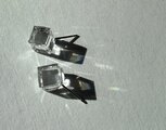ビンテージ オーストリア製 swarovski 大粒 立体キューブ(8mm)の角を 三角形にそいだモチーフを、シンプルなピアスにいたしました。すでに入手ができなくなっている素材です。