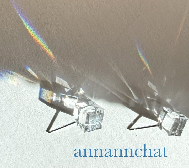 オーストリア製 ビンテージ スワロフスキ― クリスタル 大粒 8mm 斜めキューブピアス】プリズム
