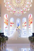実例写真!ウエディングドレス ホルターネック インポートビジューレース 華やかなトレーン 前撮り もこもこドレス