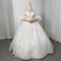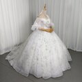豪華!ウェディングドレス パフスリーブ キラキラ光る刺繍 プリンセスライン 贅沢な総レース 拳式/前撮り