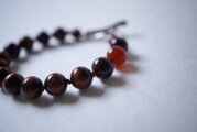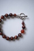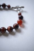 レッドタイガーアイの中にカーネリアンを合わせてドイツ製絹糸で一粒ずつ結びフィット感を感じられる長さに仕上げております。