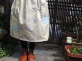 着物リメイク☆生成り紬に水色でポイント♪シックおしゃれ73cm丈