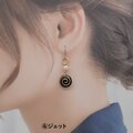 ゴールドのうずまき模様が施された丸みのあるチェコビーズの存在感のあるピアス/イヤリングです。