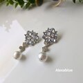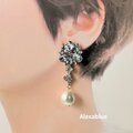 きらきらフラワービジュー×コットンパール 2wayピアス|ウェディング・パーティー向けゴージャスアクセサリー