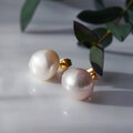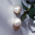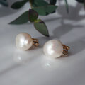 自由な形状の、大粒バロックパールのイヤリング。
