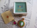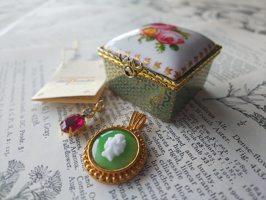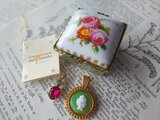 ヴィンテージ A.スペイン陶磁器ケース/ペンダント2つ/古書(植物画)Package