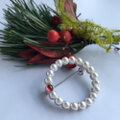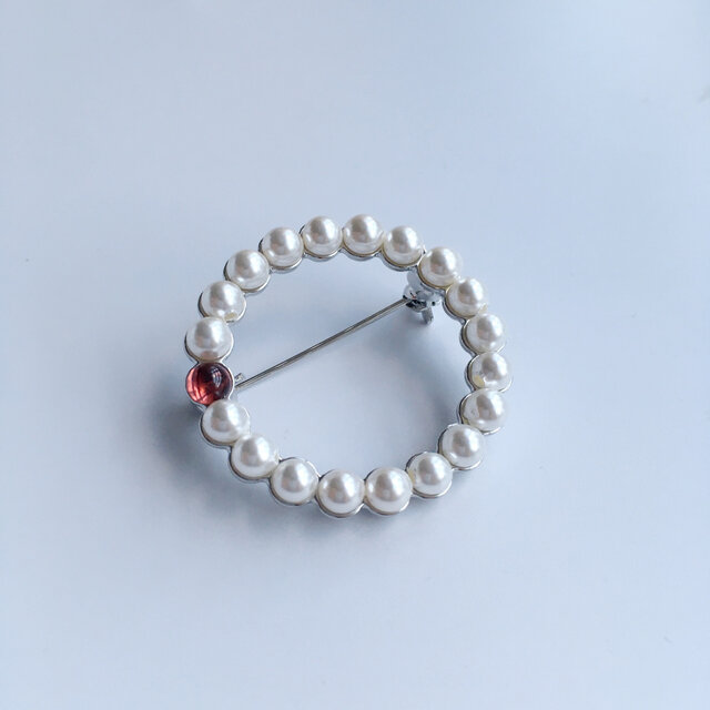 石が選べる通年用パールブローチと1月の誕生石レッドガーネット シンプル上品なブローチ普段に フォーマル 発表会