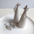 花や穀物が実ったあとになる種をモチーフにした耳飾りです 下向きに垂れる姿が蕾や雫のようにも見え、透明感も大切に製作しました。想いが実りますようにの願いも込めて