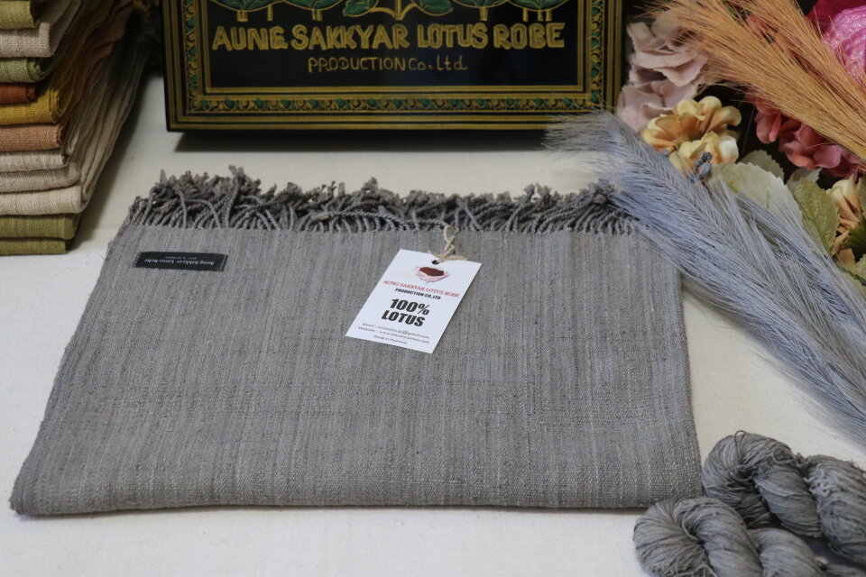 ミャンマー・インレー湖で採れる蓮の茎を折り、蜘蛛の糸のような繊維を引き出して縒り合わせ丁寧に織り上げとても珍しいストールです。