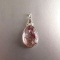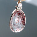赤いレピドライトが華やかなエレスチャル水晶のペンダント。