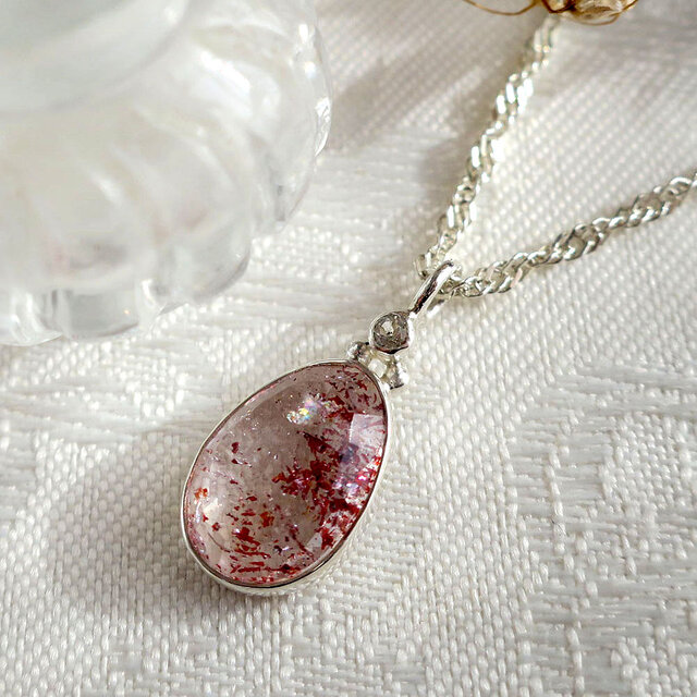 エレスチャル 水晶 天然石ペンダント|キレイめ・鏡面・レッド|パーティ・レディース