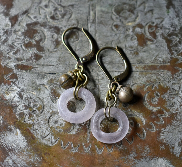 淡いパープルドゴンドーナツと民族鈴を繋いだピアスです。(イヤーカフチャームへ変更させていただきます。)
