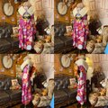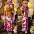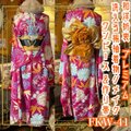 【 振袖 着物 ロングワンピース ドレス 2部式ローズ/バラ作り帯 リメイク 洗える 化繊 和洋折衷 ハンドメイド レトロ 古着 繚乱マゼンタ・ピンク FKW-41】