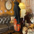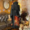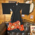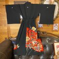 【 黒留袖 着物 リメイク ワンピース ドレス セミロング 和洋折衷 洗える 化繊 ハンドメイド レトロ 古着 吉祥の双鶴と金彩の扇 TKW-117】