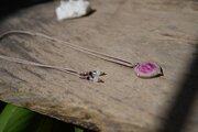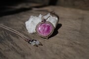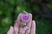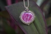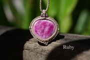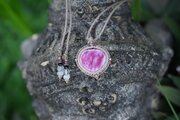 ピンクの気持ち★ハートシェイプ★ルビー マクラメネックレス1979
