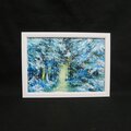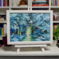 「雪の森の光」は、冬の神秘的な美しさを描いた特別な油絵です。縦210mm、横297mmのA4サイズは、雪に包まれた静寂の森を背景に、希望の光が差し込む様子を鮮明に表現しています。冷たい青色と白色のコントラストが際立ち、まるで凍てついた空気を感じるかのようなリアルさで、見る人を魅了します。