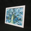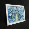 壁掛け用の金具も付属しているため、お好きな場所に手軽に飾ることができます。この「雪の森の光」は、冬の厳しさの中に潜む美しさと生命力を表現した魅力的な一枚です。